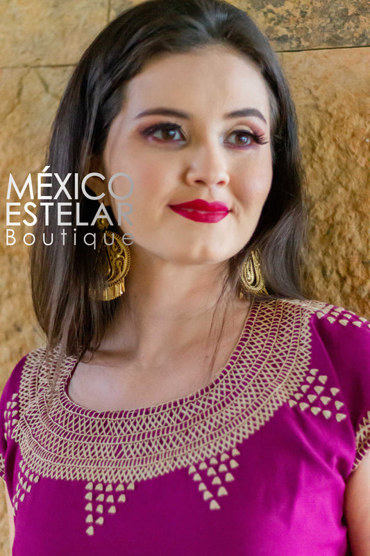 Vestido Cadenilla Bugambilia Bordado a Mano